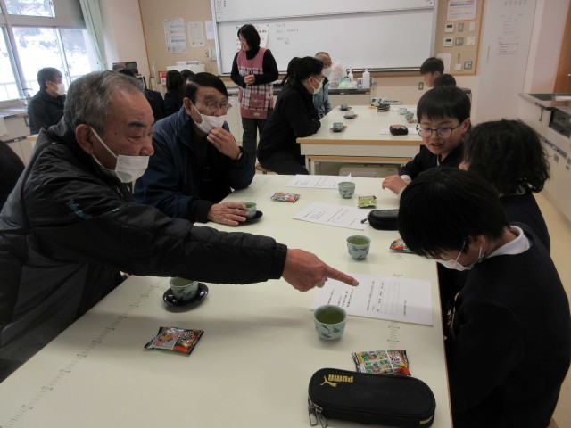 今年度最後の喬松小学校運営協議会がありました。10月に続いて、5・6年生と委員の皆様とで4つのグループになり、子ども達が聞きたいテーマで懇談をしました。楽しくお話をしながら、家庭科で習ったお茶を子ども達が入れておもてなしもしました。子ども達の感想に「ゴミを減らすための取り組みや昔はやった遊びなど、今まで知らなかったことを教えてもらった。」「地域の人とお話をして、まだ知らないことがいっぱいあることがわかった。」などが書かれていました。30分ほどの時間でしたが、和やかな貴重な時間となりました。その後は、令和7年度の取り組みの成果や課題をお話してご意見をいただき、来年度につながる会となりました。ありがとうございました。