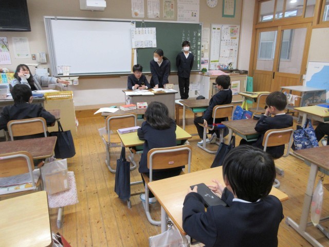 今年度最後の通学班会がありました。3学期の登下校を反省した後、春休みについての過ごし方なども話をしていました。また、来年度、新しい1年生を迎える準備も行っていました。来週からは、来年度に向けての新しい班長・副班長さんにバトンタッチです。4・5年生、よろしくお願いします!!最後に、登下校でお世話になっている見守り隊の方へのお礼のお手紙を書きました。本当に一年間ありがとうございました。