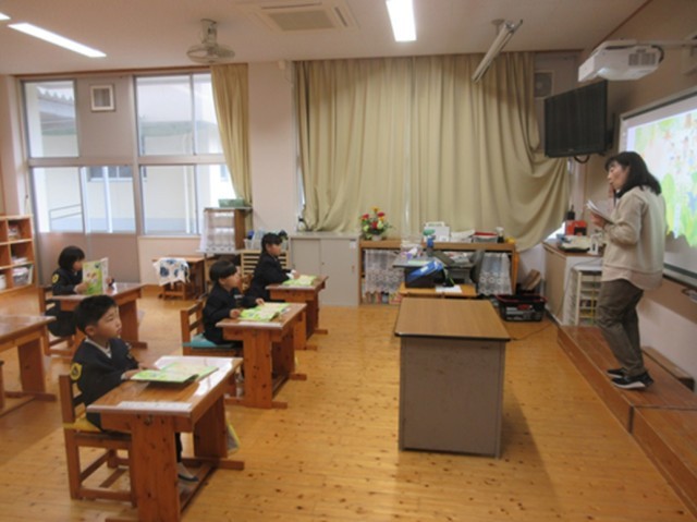 昨日の入学式を終え、今日からいよいよ1年生の授業が始まりました。 国語の授業では、みんなで声をそろえて教科書の音読に挑戦。教室中に、明るくはきはきとした大きな声が響き渡りました。また、挿絵を見ながら、「どんな動物がいるかな?」という先生の問いかけに対し、見つけた動物を一生懸命に伝えようとする姿からは、これから始まる学習への意欲がキラキラと感じられました。