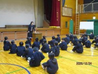 11月14日(火)、津山法人会の4名の方をお迎えして、5・6年生が租税教室を行いました。税金に関するクイズや税金のない世界を体験するアニメを視聴し、税金の必要性について学習することができました。重さ約10キロの1億円のレプリカを手にした児童は「思った以上に重い」などと驚いていました。