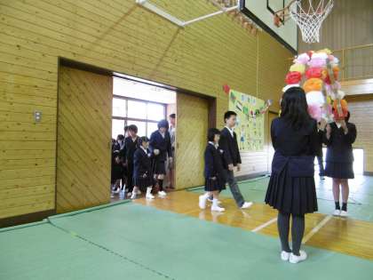 拍手いっぱいの会場に 1年生と6年生が手をつないで 入場しました。