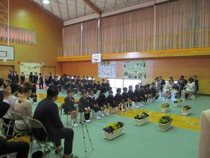 校庭の桜が満開になった入学式です。今年は13名の1年生が入学しました。