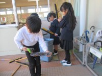 班ごとに仲良く、協力しておいしいフルーツポンチの完成です。