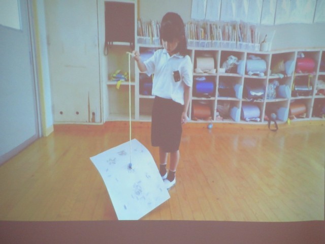 作成したおもちゃについて説明し、それを使って遊んでいる動画も紹介してくれました。