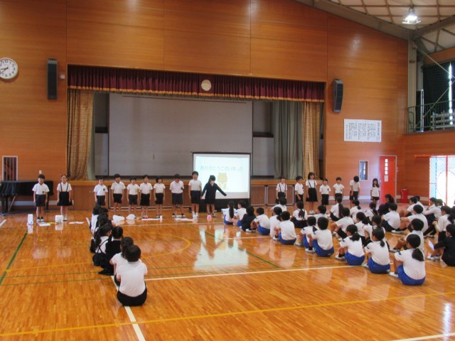 6日の全校朝礼の場で、2年生による「発信タイム」がありました。