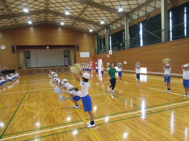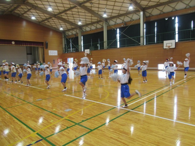 1曲目は、全員よく覚えていて、自信をもって、リズムに乗って踊ることができていました。ポンポンの動きがよくそろっていて、動きのたびにきらきらと光り、とてもきれいです。