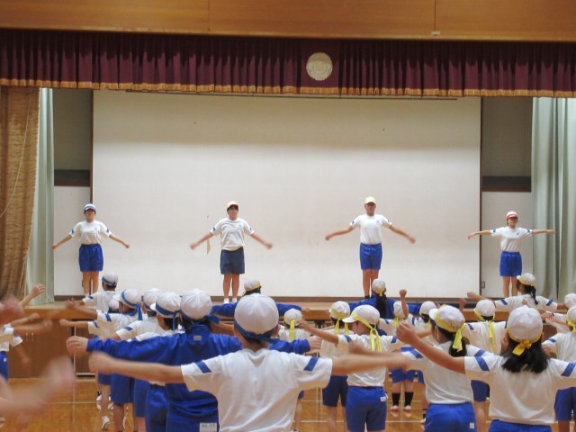 今日は天候が悪かったため、体育館で全校練習をしました。