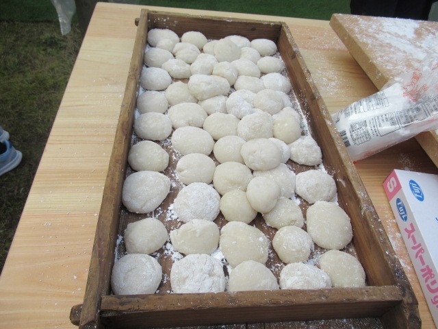 まるめたおもちを、あんこや酢につけた大根おろしとまぶしておいしくいただくことができました。