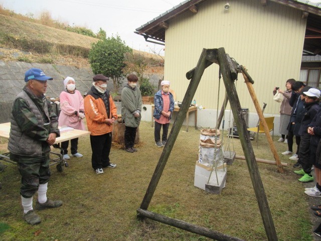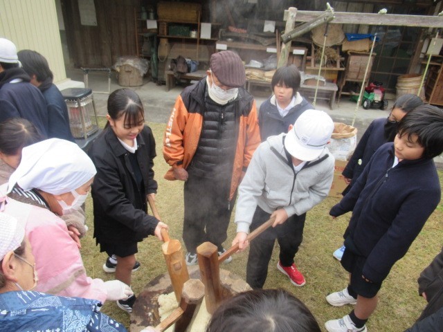 5月から、一連の学習をご指導いただいた大﨏さんのお宅で、学習を支援くださる地域の方のご協力を得ながら、もちつきを体験することができました。