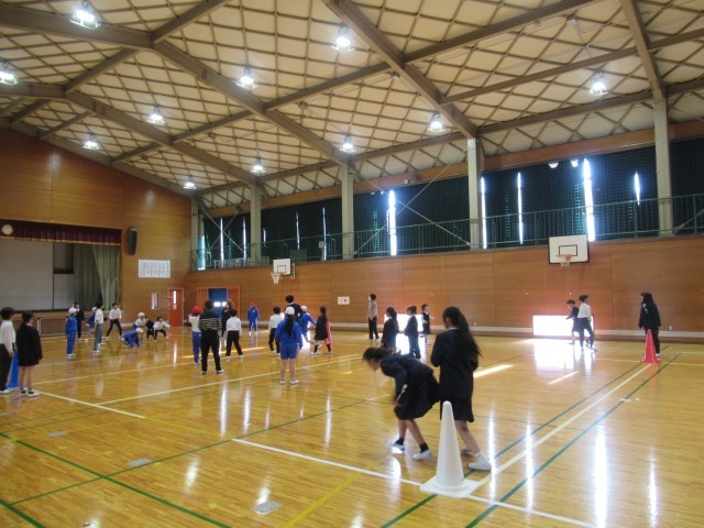 寒空の中、運動場では、おにごっこに夢中になる班がありました。先生も全力でダッシュしていました。