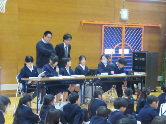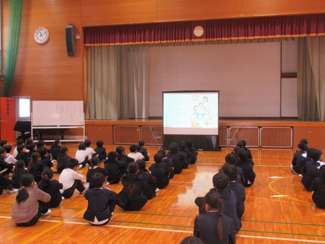 9日には、全校児童が集まり、運営委員会による「人権集会」が行われました。