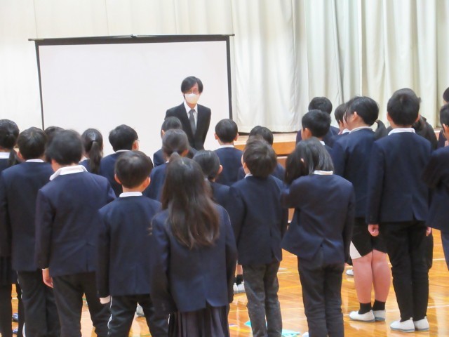 式の後は、冬休みのくらしについて、担当の先生からお話がありました。「命」と「心」を大切に過ごしてほしいです。