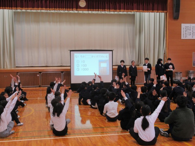 今日は、「委員会タイム」があり、図書委員会・環境委員会の児童による、発信がありました。