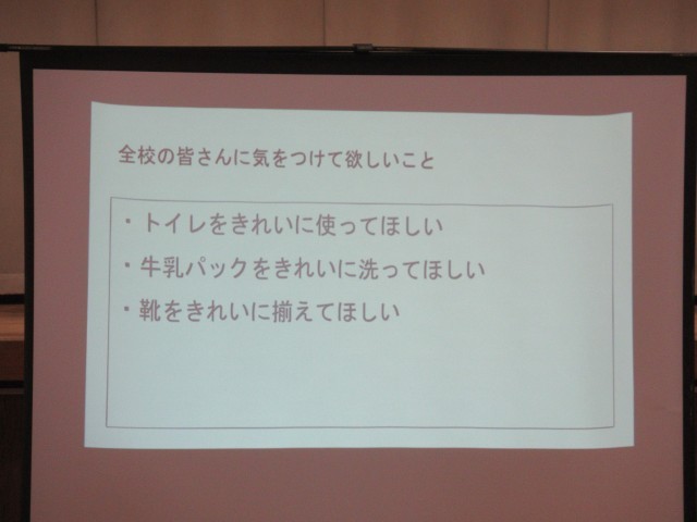 全校のために頑張ってくれている委員会活動です。見える部分、見えない部分がありますが、しっかりアピールできたこと、とても良かったです。