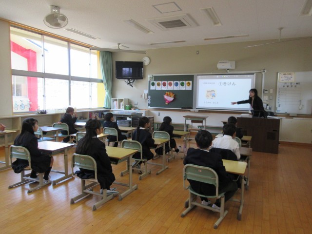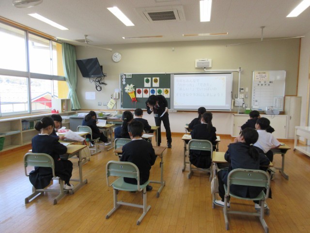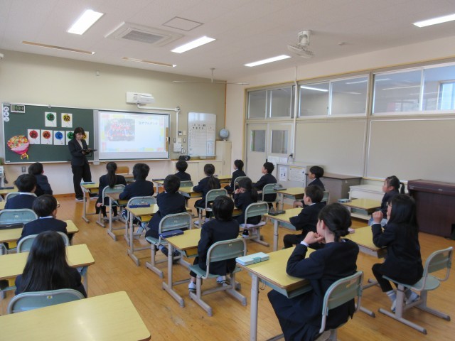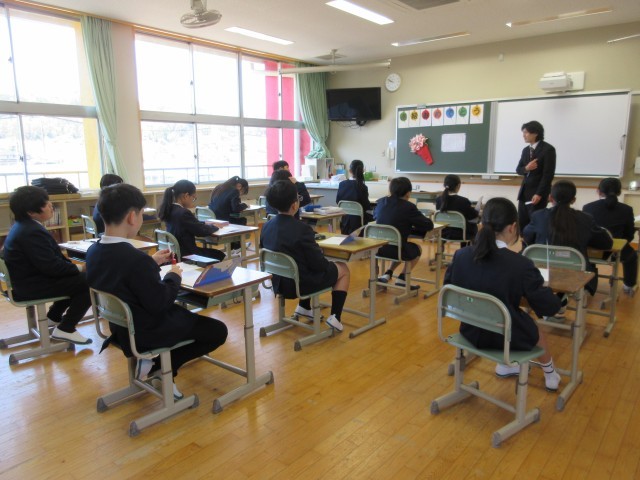 新しい先生と過ごす最初の時間です。どの学年も落ち着いてお話を聞くことができていました。