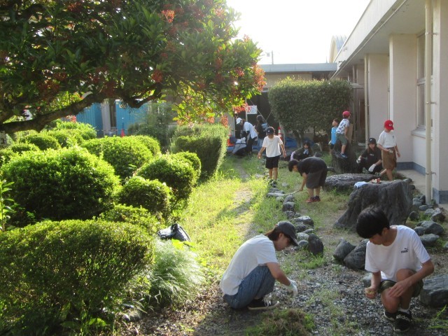 PTA親子ふれあい作業を行いました。残暑が厳しい中、早朝よりたくさんの保護者や児童の皆さんに参加していただきました。