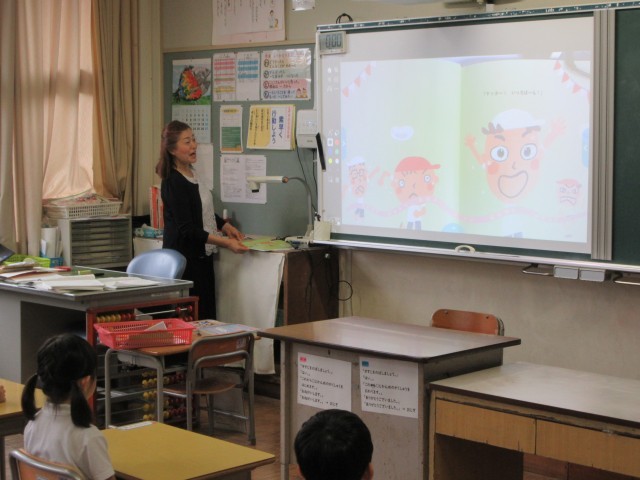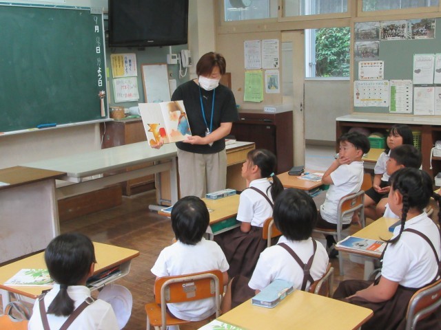 1年生は、絵本「こころとしんぞう」と「おおきくなるっていうことは」、2年生は、絵本「ききみみずきん」3年生は、絵本「スイッチョねこ」を読んでいただきました。