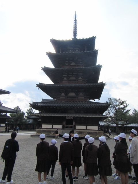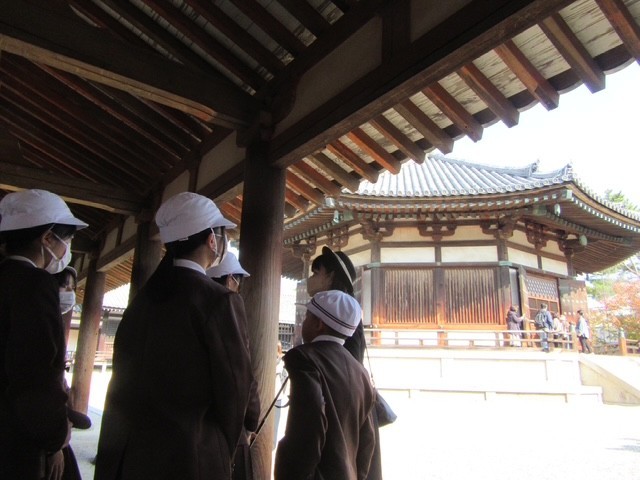 最初に法隆寺の見学を行いました。お天気も良く修学旅行日和です。