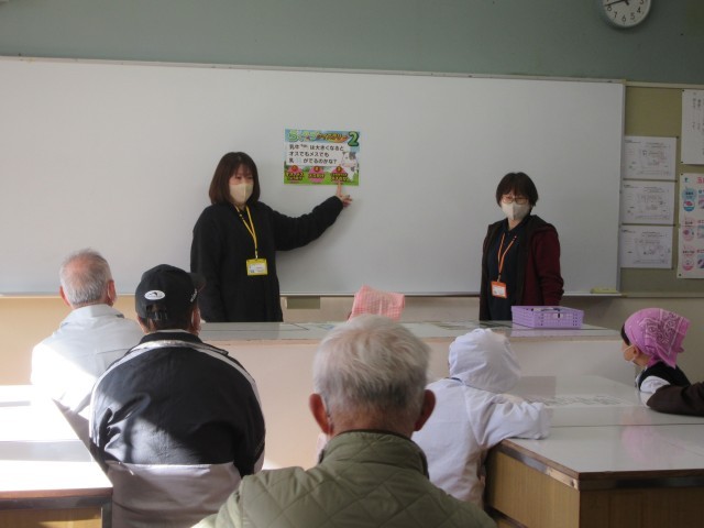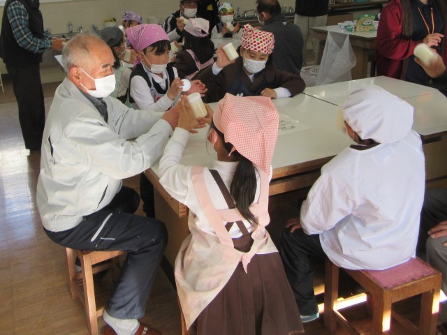 おかやま酪農業協同組合の皆さんをゲストティーチャーとしてお迎えし、倭文学習館の公民館活動と連携して、地域の方々と一緒に行いました。