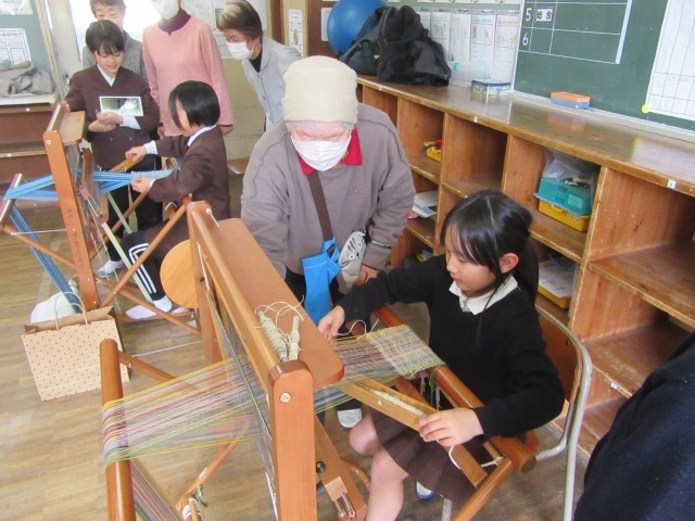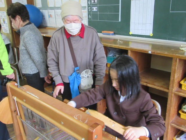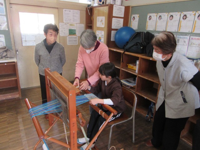 子どもたちは、自分たちの手で糸が布になっていく喜びを感じながら、集中して取り組んでいました。