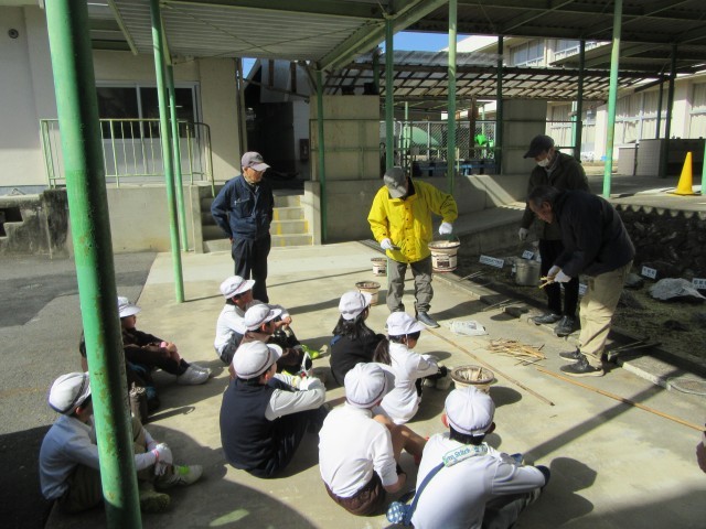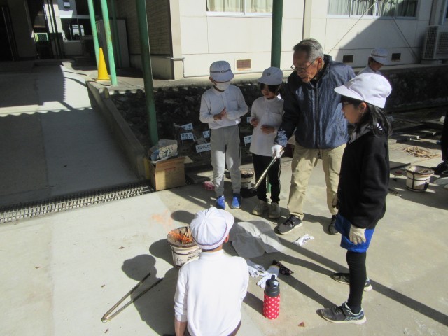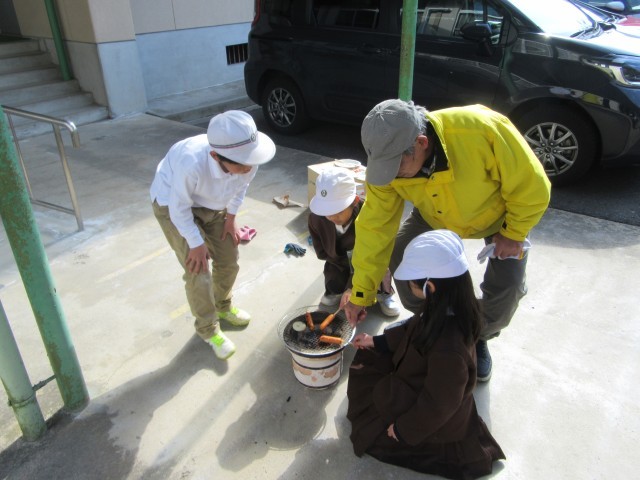 3年生は社会科の学習で、地域のボランティアの先生をお迎えし、七輪を使った昔のくらし体験を行いました。