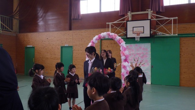 最後には、児童全員で花道をつくり、先生方を温かく見送りました。