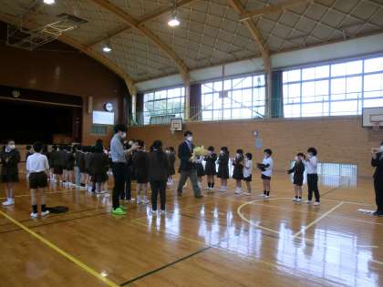 心を込めて書いたメッセージを読んだり、花束のプレゼントがあったり、最後には子ども達でつくった花道で、お送りしました。