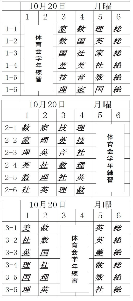 さて来週10月20日(月)の時間割です。