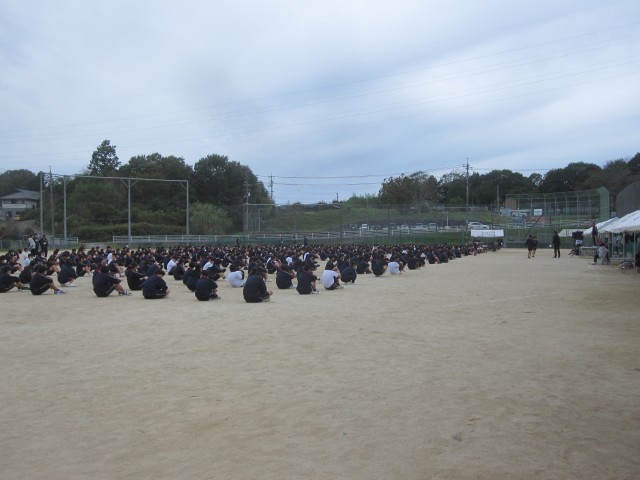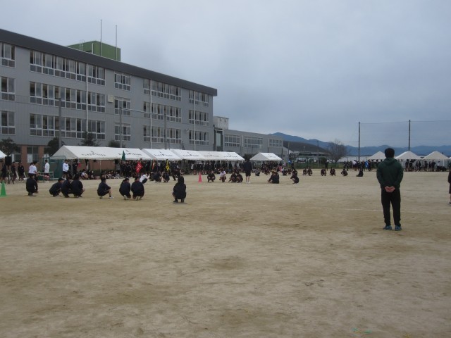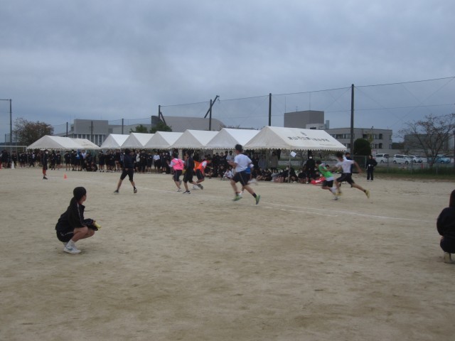 曇天で気温がまったく上がらず、肌寒い中での予行でしたが、生徒の皆さんは元気よく予行に臨んでいました。全ての競技を実施したわけではありませんでしたが、リレー種目では応援テントからも熱い声援がおくられていて、津山東中がひとつになっている瞬間だなと感じました。