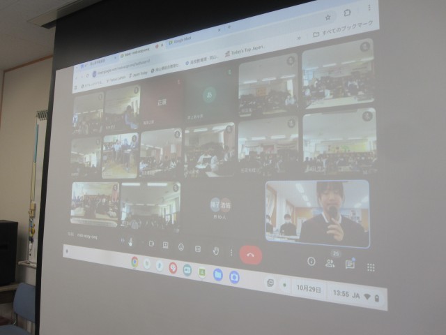 先日の生徒会選挙や第1回専門委員会を受け、今日の5時間目に生徒総会が行われました。本来であれば体育館に集まって行う予定でしたが、インフルエンザによる学級閉鎖のクラスもある中、感染拡大を抑えるためリモート形式に急遽変更して行いました。会議室には新生徒会本部役員や、各専門委員会の新委員長や新副委員長があつまり、リモートで議案の提案をしながら一つひとつを決をとっていきました。生徒の皆さん、お疲れ様でした。