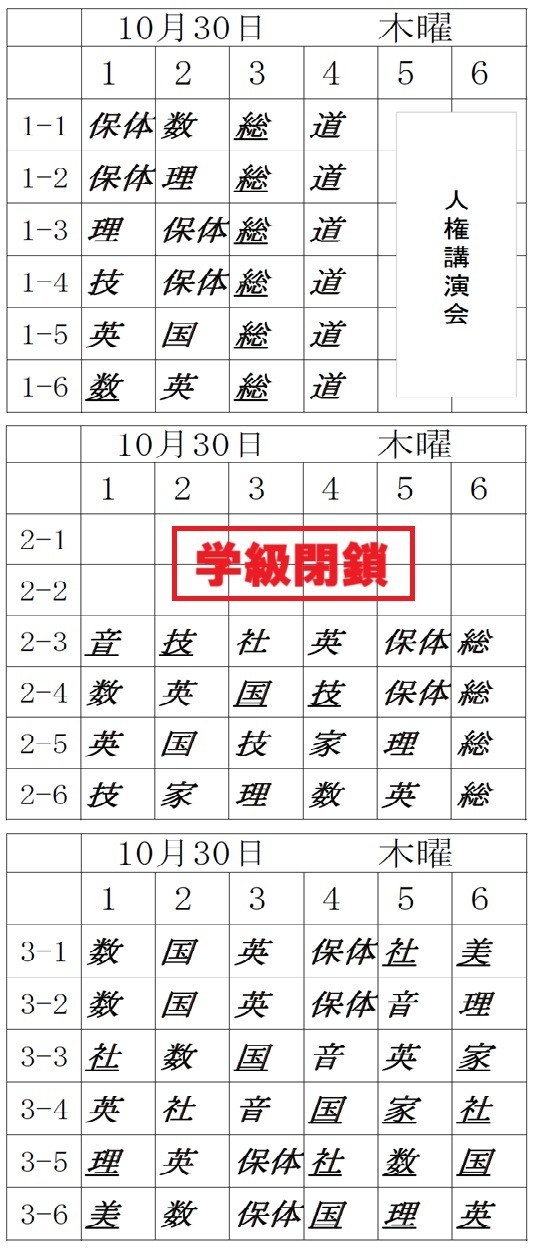 明日の5・6時間目には、1年生対象の人権講演会が行われます。この講演会は参観を兼ねています。参観については、全学年の保護者の皆様が対象となっておりますので、ご都合がつかれましたら是非お越しください。お待ちしております。