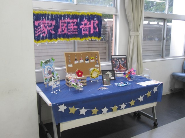 今週は文化部発表週間です。会議室には文化部(美術部と家庭部)の作品が展示をされています。どの作品からも、時間をかけて一生懸命に取り組んだ様子が伝わってきます。運動部の活躍を紹介する機会がどうしても多いですが、文化部の皆さんも頑張っています!是非この機会に、文化部の皆さんの頑張りに触れてみてください!ちなみに明日は展示がありません。次は11月6日(木)15:30~16:45、11月7日(金)15:45~16:45です。なお、両日とも16:00からは、本校中庭にて吹奏楽部による演奏の部も行われます。