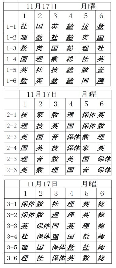 当日はノー部活動デーです。3年生のモジュール学習もありません。来週も頑張りましょう!