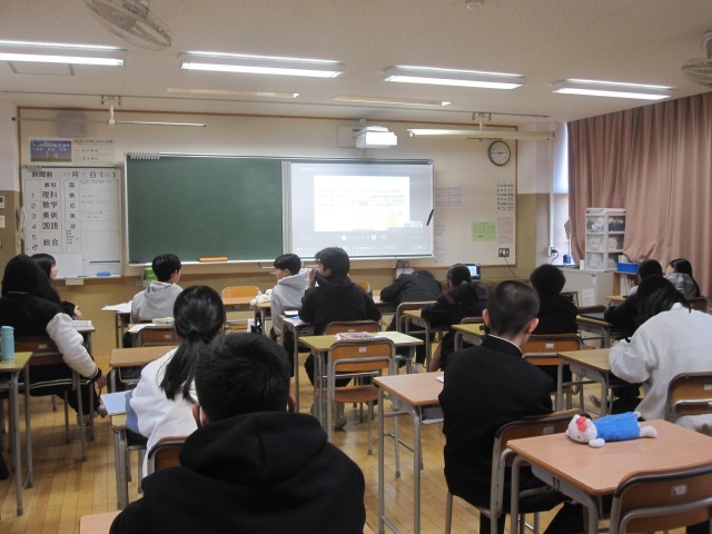 今日の5・6時間目、1年生津山郷土学の学年発表会が行われました。先日3日(水)のクラス発表会を受けて、各クラスから選出された代表の班が、今度は1年生全体に向けて発表を行いました。最近の冷え込みと、1年4組がインフルエンザによる学級閉鎖中ということもあり、体育館などに一同に集まる形式を避け、リモート形式で発表会を行いました。どのクラスも真剣に、他の班の発表を聴けていましたね。お疲れ様でした。
