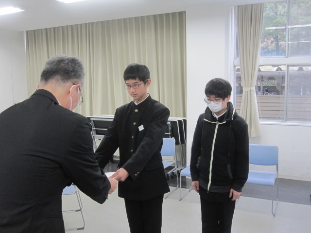 12月24日(水)2学期終業式がリモート形式で行われました。酷暑の8月に始まって秋から冬へ。長い長い2学期が終了しました。皆さんにとって、2学期はどんな学期だったでしょうか。終業式に引き続いて、生徒指導の先生からの話、生徒会からの話、表彰伝達が行われました。特に表彰は、この2学期、本当に多くの生徒が運動面、文化面で優秀な成績を納めてくれました。本来であれば一人一人に賞状を渡したいところでしたが、時間の都合上、ほとんどの個人・団体が早口での紹介のみとなってしまいました。みんな頑張ったのに申し訳ないな、と思いながら紹介をさせていただきました。