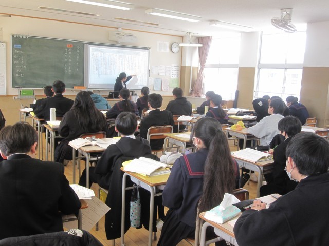 またインフルエンザによる学級閉鎖となっていた2年2組、2年6組も明日から再開します。3年生も登校するし、久しぶりに全校生徒がそろいます。まずは明日の予行を頑張りましょう。