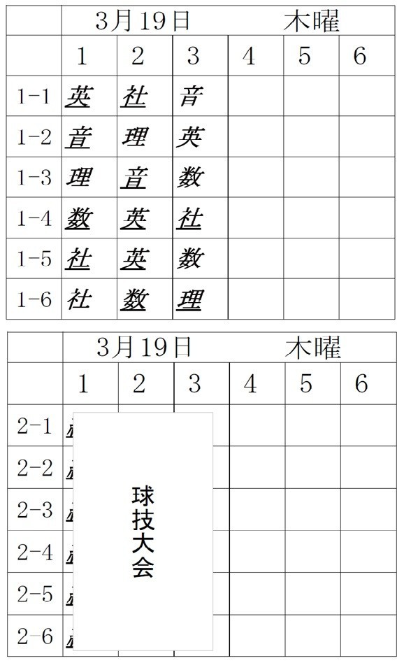明日3月19日(金)の時間割です。