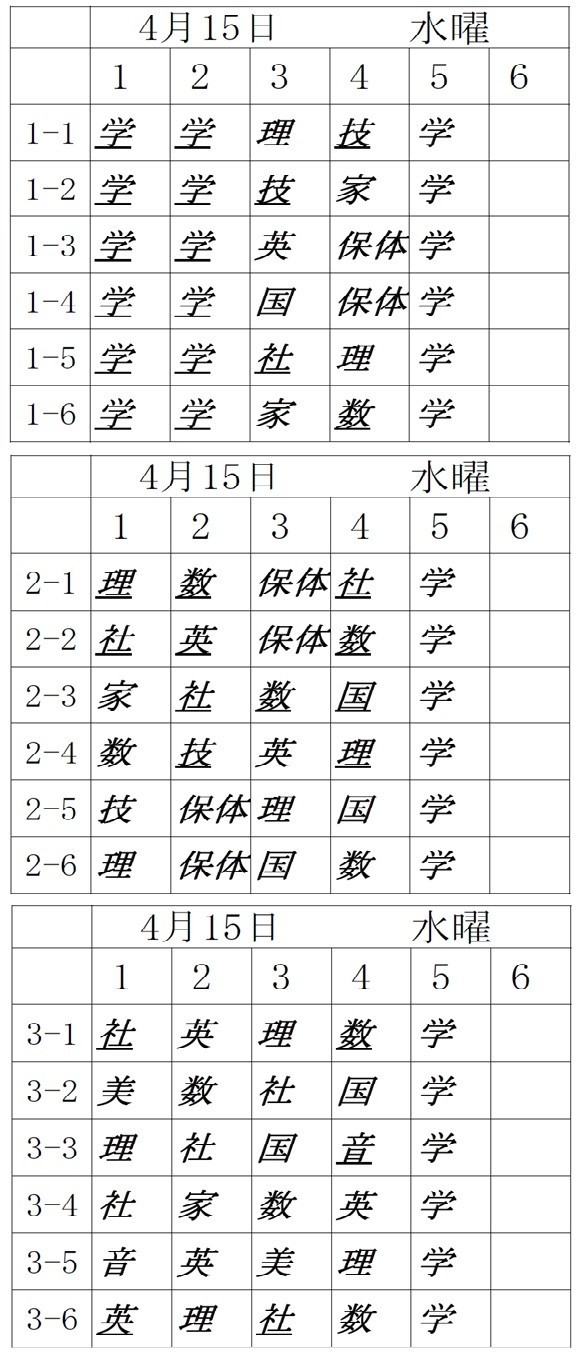 50分×5校時、給食あり、掃除なし、部活動なし、帰りの会終了14:30、生徒下校完了15:30です。