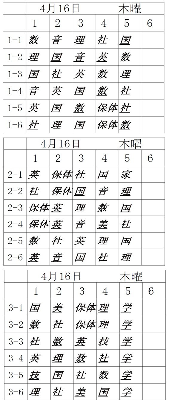 今週も水曜日をむかえ、授業もだんだん本格的に始まってきました。”授業開き”ということで、各教科担当の先生方からは、授業の進め方や準備物、テストや成績のつけ方など、オリエンテーションを中心に授業が進められていました。これまでの自分を振り返って、「今年こそは頑張るぞ!」と張り切っている人も多いかと思います。年度がわりの”節目”を大切にして頑張っていきましょう。