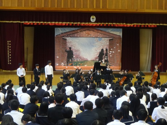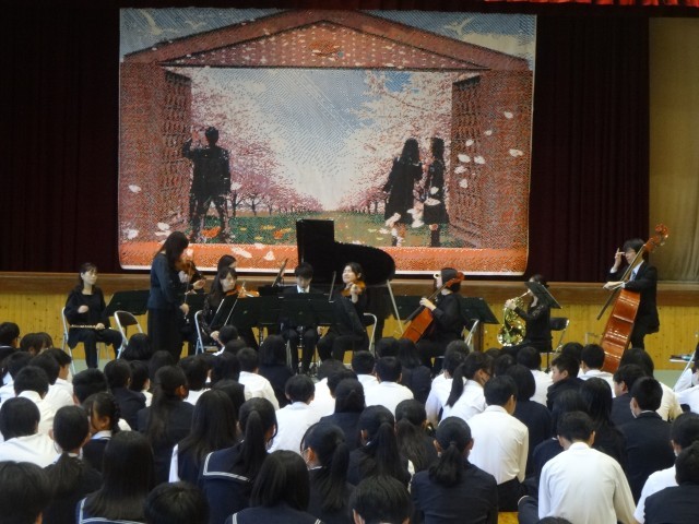 芸術鑑賞会を実施しました。今年度は、岡山フィルハーモニック管弦楽団メンバーによるコンサートでした。純粋に音楽を楽しむことの大切さ、楽しむことができる幸せを感じられたでしょうか。本物に触れることも貴重な学びの機会です。しっかり充電できた人は、また歩き続けられますね。素晴らしい演奏をありがとうございました。