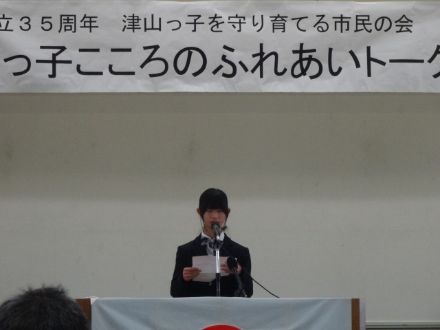 歴史あるこの会に今回も2名の代表生徒が参加してくれました。発表内容は「部活動」「友達」についてでした。市内9校の代表が、それぞれの思いを表現してくれました。司会の方の巧みなコーディネートによって近年になく会場との交流が進みました。