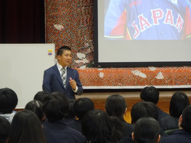 1年生が、道徳教育として開催しました。講師は、新見第一中学校の槇原淳幹先生です。野球日本代表の主力選手として、世界大会で優勝した経歴の方です。本校とはご縁があり、槙原先生の初任校でした。久しぶりの中道中学校でしたが、1年生の心を大きく動かし、たくさんの種をまいてくださいました。一気に槙原先生にファンになった人もいたようです。この種を大事に、大事に育てていきたいと思います。ありがとうございました。