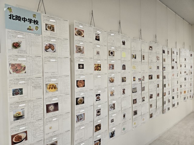 夏休みに取り組んだ作品が一堂に展示されていて、北陵中ブースにも、栄養バランスや彩りなどまでいろいろと工夫を凝らした力作がずらっと並んでいました!