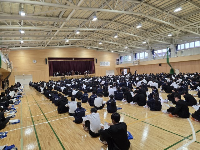 今回(水)の生徒総会は、全校が体育館に集まって行われました。コロナ禍があり、体育館では狭いこともあって、もう何年も全校で体育館に集まる機会がありませんでしたが、今回はオンラインではなく、「顔を合わせて」の機会としました。