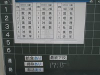 9月10日(水)の時程は、50分の5校時で給食あり、掃除なし、帰りの会が14:40に終了し、部活なし15:00下校完了となっています。