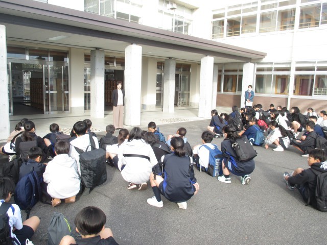 本日は、1年生の校外学習がありました。出発式の様子を載せています。(どこかの機会に全体の様子も載せようと思っています。)