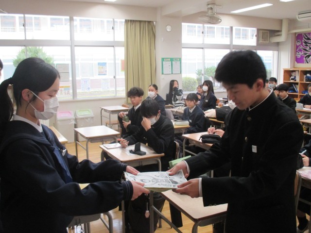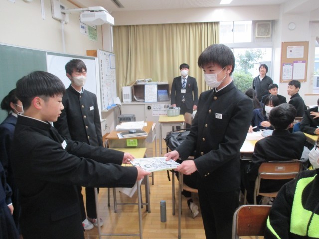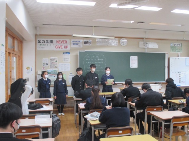 本日は生徒会から3年生に1,2年生みんなで作った進路応援日めくりカレンダーが贈呈されました。1,2年生の熱い応援を背に3年生はここからの進路決定に向けて力一杯頑張ってくださいね。