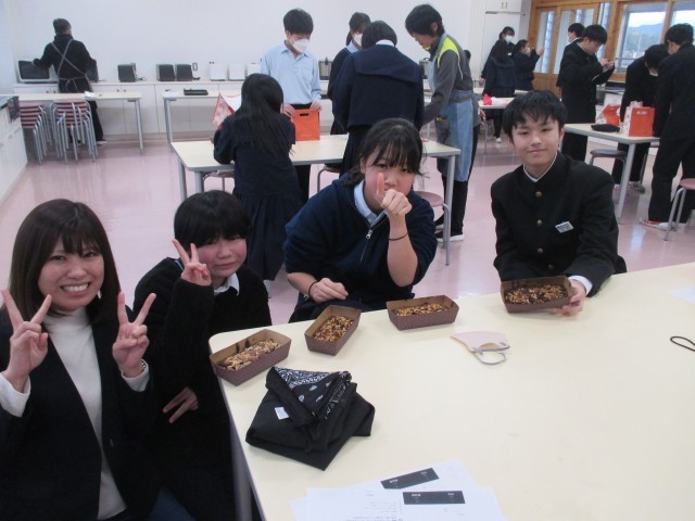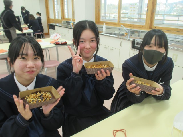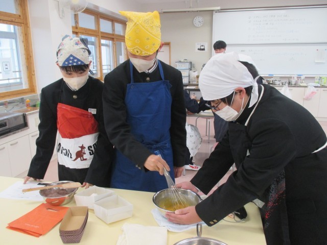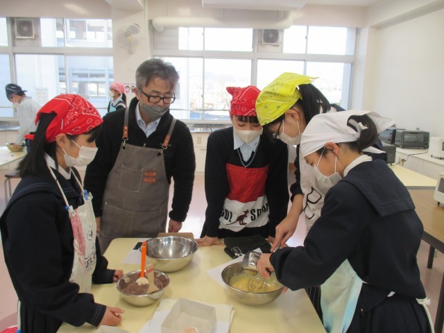 本日は「わくわくクッキング」バレンタインデー直前企画『中村先生直伝ヘルシーガトーショコラ作り』が開催され、多くの生徒が参加してくれました。みんな楽しく、おいしそうなチョコケーキが焼けていて「また同じような機会があったら、参加したい!」とうれしい声も聞こえてきました。良い企画になったとおもいます。企画をしてくださった担当の先生、講師をしてくださった中村先生、参加してくださった生徒の皆さん、お手伝いをしてくださった先生方、本当にありがとうございました!