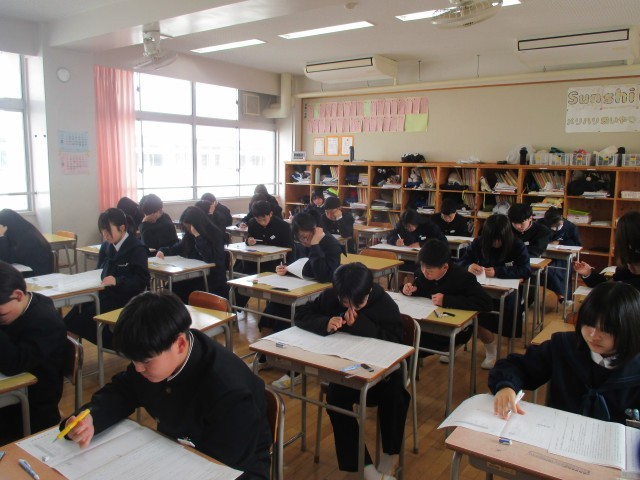 本日は3年生が受検している裏で、1,2年生は自己診断テストを受けました。3年生の受検の雰囲気が学校全体に広がっているようで、どちらの学年も集中してテストに取り組めていました。まだまだと思っていても、あっという間に時間は経って、受験はやってきます。今から十分な準備をしておきましょう。