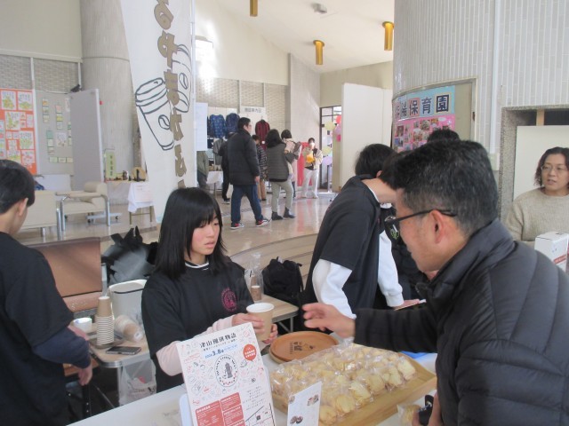 2月21日(土)は津山中央公民館文化祭に、つるやまかふぇが出張しました。今回も多くの方に来店いただき、生徒ボランティアスタッフが大いに活躍しました。このような機会を提供してくださった中央公民館の方々、本当にありがとうございました。お手伝いに来てくださったPTAの方々にも感謝申しあげます。